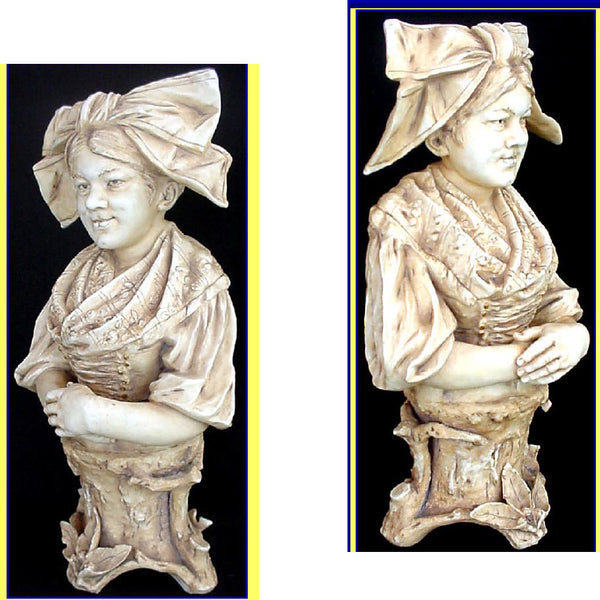 Antique Victorian Art Nouveau figurine. Amphora porcelain ceramic bust. Made by Alfred Stellmacher - Amphora RSTK in Turn-Teplitz, Austria 19th century 1884-94.