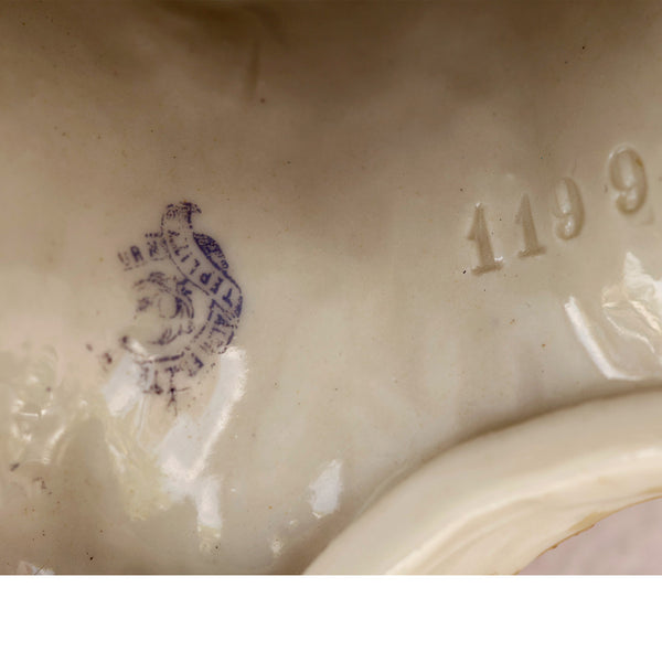 These pieces were typically made from a unique ceramic material known as ivory porcelain, developed by Stellmacher himself. It had a soft, matte finish that allowed for more elaborate modeling and surface decoration. His works often included fantastical creatures, flowing drapery, and highly expressive human figures—hallmarks of the Art Nouveau movement