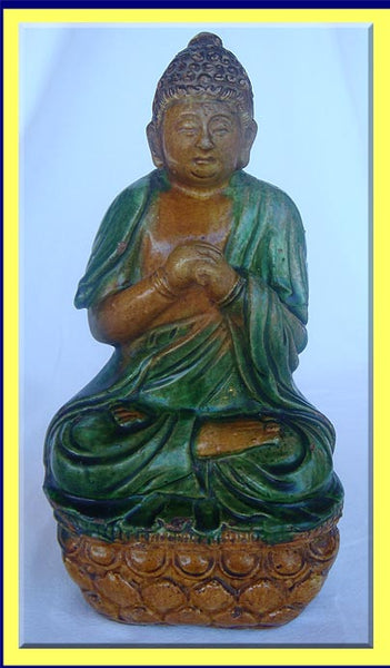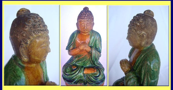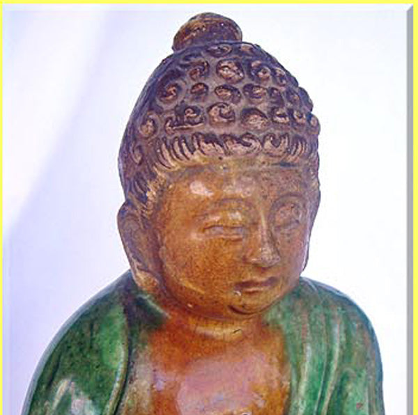 Guarranteed authentic: Antique Sancai-glazed figure of Buddha.