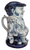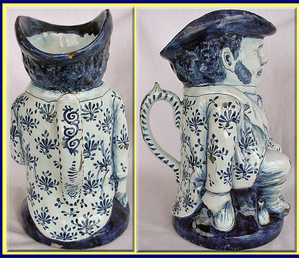 In one hand he holds a sack or bag of money, while another is tucked under his right boot.