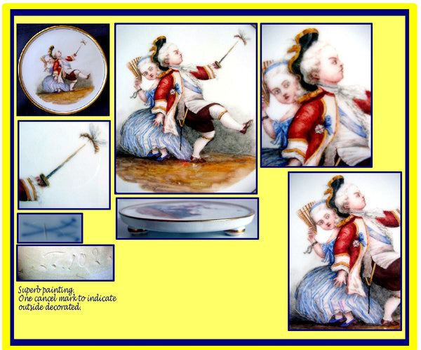 Very likely outside painted (as so many of the best Meissen pieces are) as indicated by a single scratch across the underglaze Meissen mark underneath.