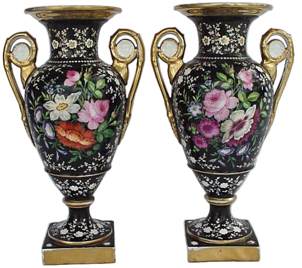 Outstanding pair of vases made in France by Sevres or related Old Paris factory, 19th century.