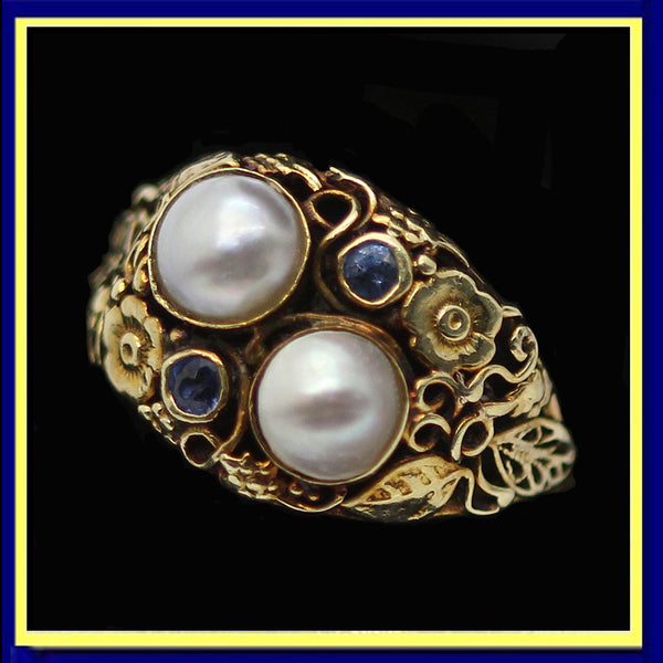 Antique / vintage Arts & Crafts Art Deco ring. 14k yellow gold, pearls and topaz. Made in the USA circa 1920-40's.
