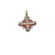 Description : Cross with equally long arms, the ends connected via triangles. The cross is outlined in gold and set with pearls in its entirety. The terminals have gold globules, which is a reference to the Etruscan Revival style for which Castellani and Giuliano were famous. The triangles connecting the terminals have orange guilloche enamel grounds and are set on the very edge with pearls. The delicacy of the workmanship is breathtaking. The subtlety of the bright yellow gold, orange and pearls is stunning.