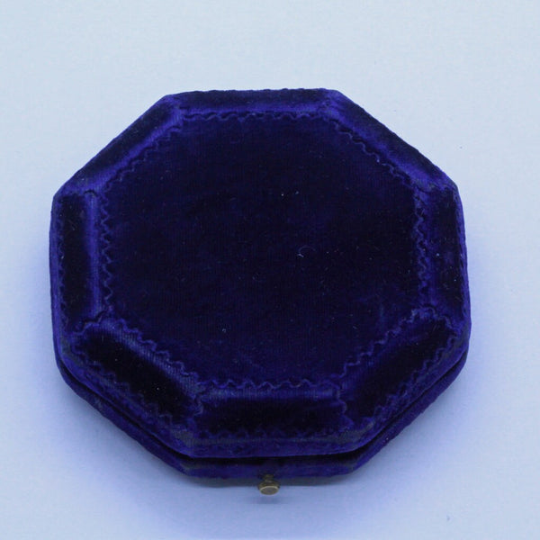 The pendant comes in its original hexagonal fitted box, typical of Giuliano. Purple velvet outside, blue silk and velvet inside with gold embossing inside the lid. Hinge and clasp in good, working order.