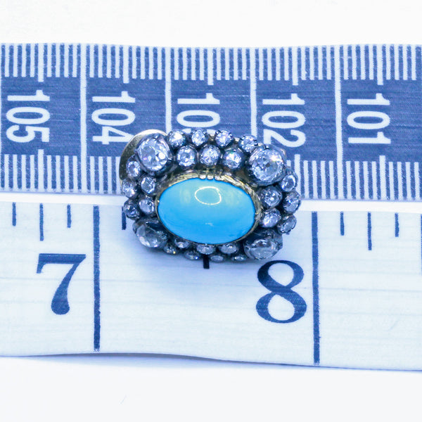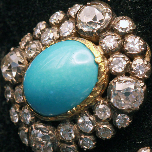 3.51ct diamonds (old and single cuts). 7.08ct natural turquoise.