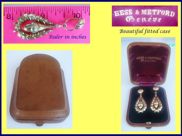 Antique Victorian day / night pendant earrings. 14k gold. Made circa 1890, European. Comes in associated fitted case.