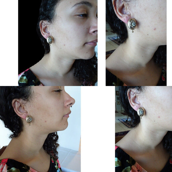 Measurements: Not including the little drops, the earrings are 1 inch (2.5cm) long. Combined weight is 11.6 grams.