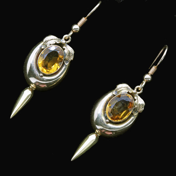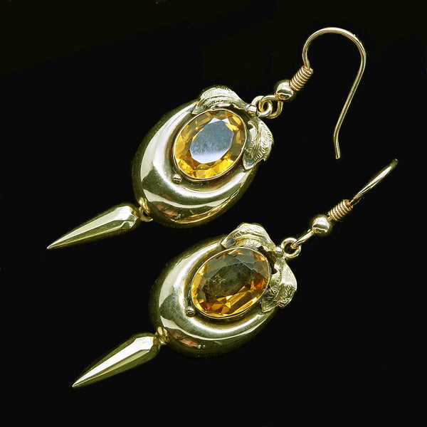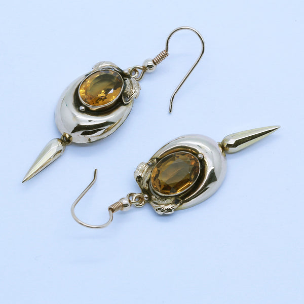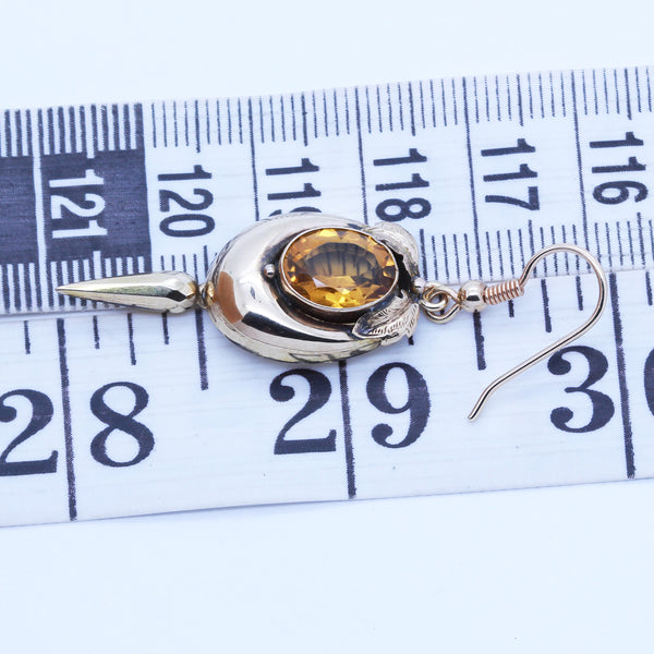 Antique Victorian earrings ear pendants. 9ct Gold and citrines. Made in England circa 1880's.