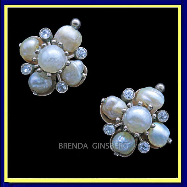 Condition: Good with minor wear commensurate with age. Tiny solder marks at the back where posts replaced original wires cannot be seen from the front. Some natural aging to pearls mentioned only for the sake of total accuracy. Please see description and enlarged pictures and don't hesitate to ask questions which we will do our best to answer.