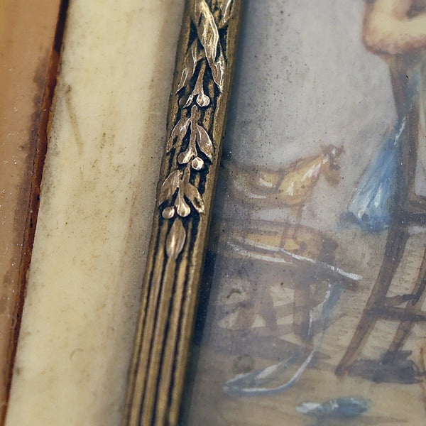 Antique Georgian Empire handpainted miniature portrait painting. Original old frame. Made in France, circa 1800-1812 during the First Empire period of Napoleon and Josephine Bonaparte.