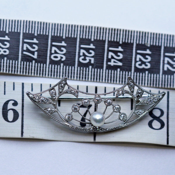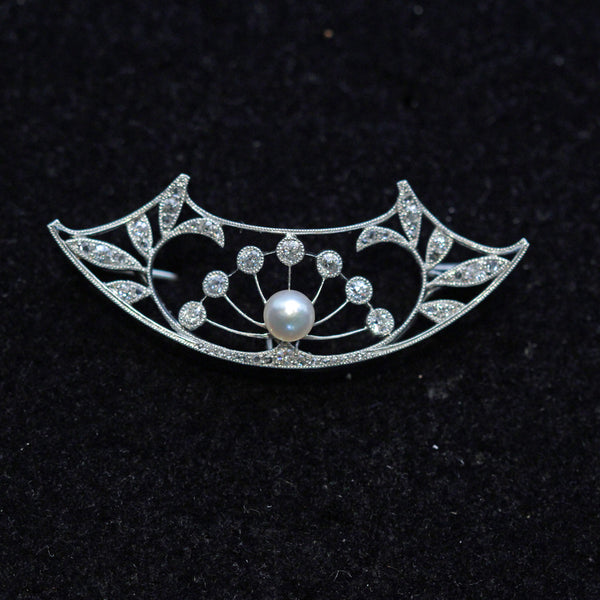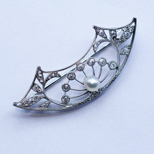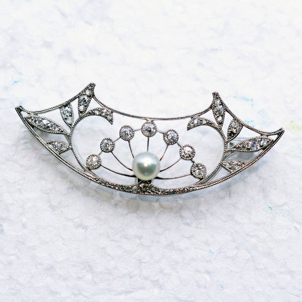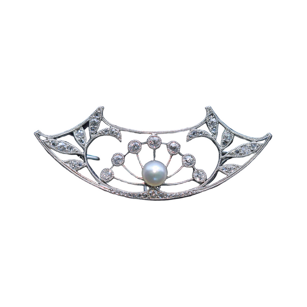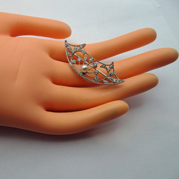 Antique Victorian Belle Epoque brooch. Platinum, Old European Cut and Rose Cut diamonds and pearl. Made in Paris, France by Henri Vever circa 1890 - 1914.