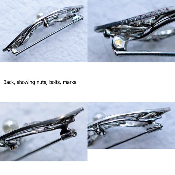 Marks and Metal: VEVER - PARIS engraved on the side. Another pair of dog hallmarks (for platinum)on the side and one on the pin as well as a model number 2798.