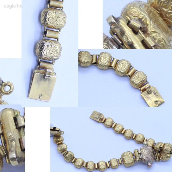 Marks and Metal: French eagle head mark on loop near clasp, on tongue of clasp and hook near center of bracelet. It is believed that the bracelet is actually earlier (Charles X - 1820's to 1830's) with slightly later marks.