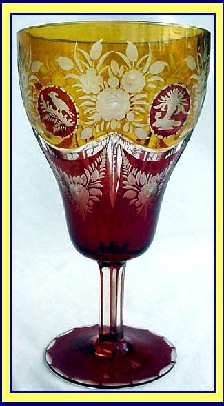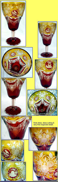 Exceptional Moser goblet red and amber cut to clear and finely engraved.