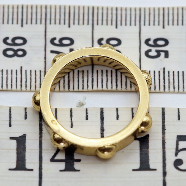 Very solid gold band, eternity ring. The outside with 7 raised gold half-spheres. One of these spheres is set with a brilliant-cut diamond.