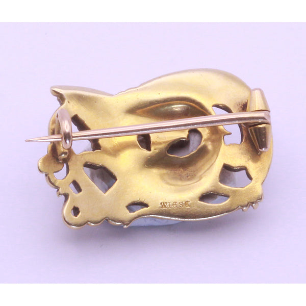 Antique Victorian brooch. 18k gold. Made by Louis Wiese, Paris, France circa 1900. Unisex - suitable for a man or a woman.