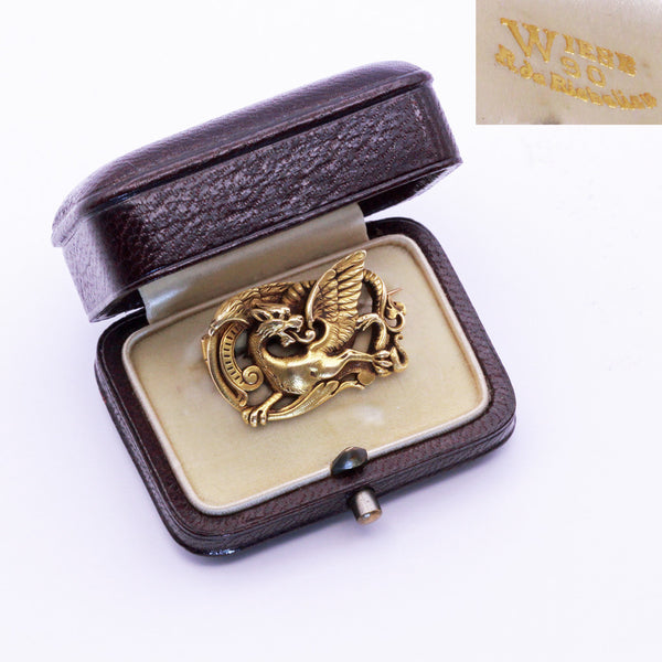 "Fabulous jewel of a fabulous beast. This gold Dragon or Wyvern was sculpted for the famous French jeweler Wièse. This Wyvern is closely related to the chimera of choice for the City of London's coat of arms and whose iconic presence can be seen 'guarding the city's boundaries'