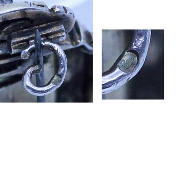 Marks and Metal: The brooch is signed FROMENT MEURICE. The mark is worn but legible. The hinged c-clasp must be a replacement as it is hallmarked with a swan, which was only used for silver after 1893. The brooch features a mixture of silver and gold. It is not clear how deep the gold layer extends.