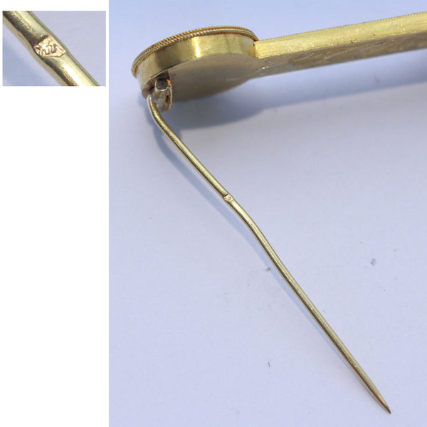 Hinged pin and clasp. Engraved name of the original owner K.L. Day (possibly K.S. Day - see 'photos) forms a material link over the centuries between generations who have enjoyed and appreciated this wonderful antique jewel.