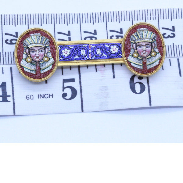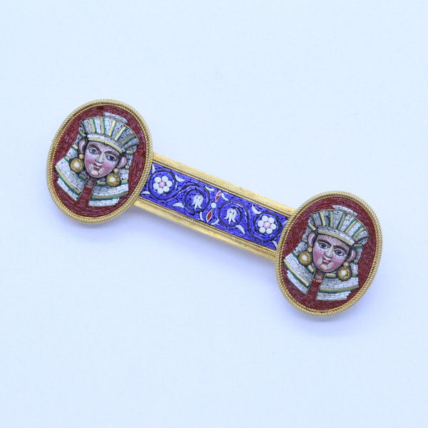 Antique Victorian Archaeological Egyptian Revival brooch. 18k gold and micromosaic plaques. Made circa 1880.
