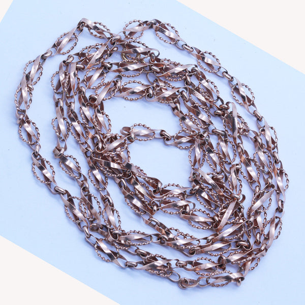 Antique long chain necklace, sautoir. 14k red gold. Origin and exact date unknown, but believed to date to circa 1900. Possibly Russian.