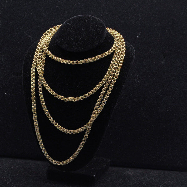 Antique Victorian long chain necklace. 15ct gold. Made in England, United Kingdom, 19th century.
