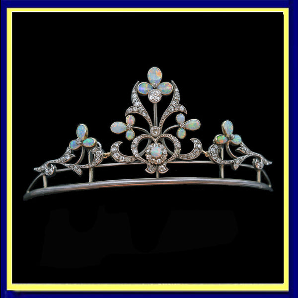 Weight of tiara: 29.3grams. 2.01ct diamonds. 3.30ct opals.