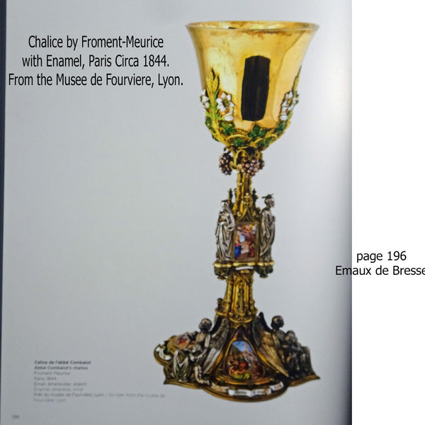 We have shown another similar example of the work of Francois-Desire Froment-Meurice in the pictures. It appears to have very similar angels and the center is filled with an enamelled shield. It is shown on page 40 of Henri Vever's book on 19th century French jewelry. The design and modelling of the wings is identical as is the use of silver with partial gilt highlights. Jules Wiese produced many of the Froment-Meurice designs.