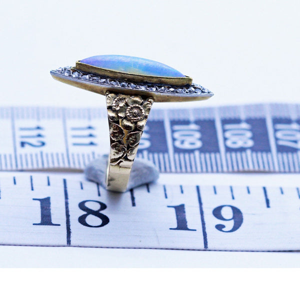 Antique Art Nouveau ring. 18k gold, platinum, opal and diamonds. Made in France circa 1890 - 1910.