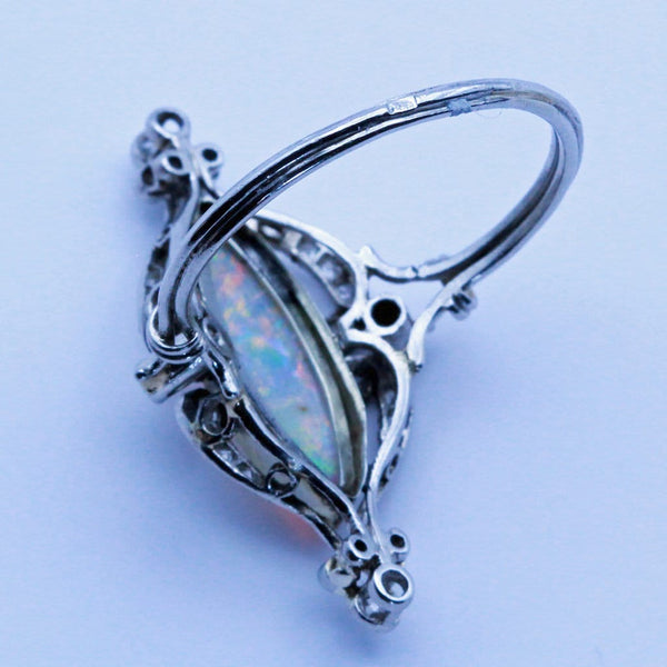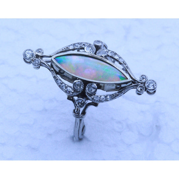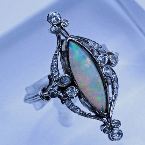 Antique Art Nouveau ring. Platinum, diamonds, opal. Made in France, circa 1895 - 1910.