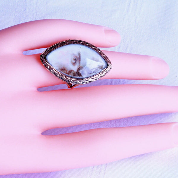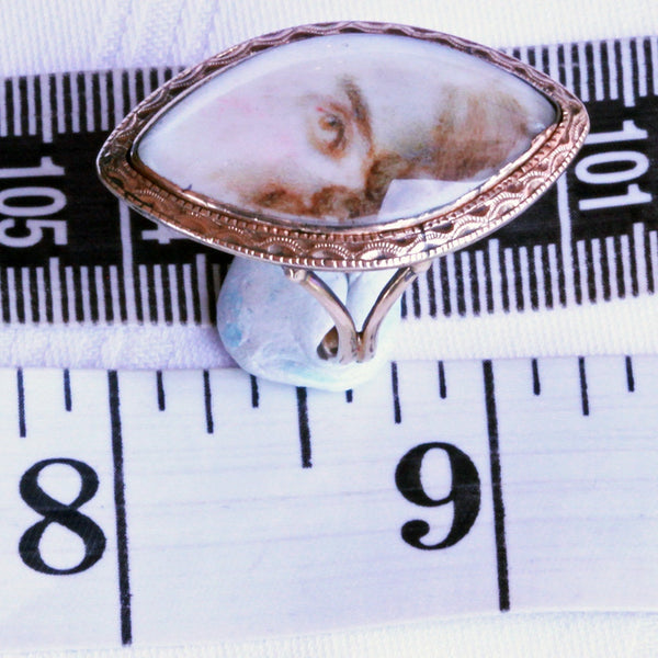 Antique Georgian miniature eye portrait ring. 15k red rose gold. Made in England, United Kingdom. Circa 1800. Unisex - suitable for a man or a woman.