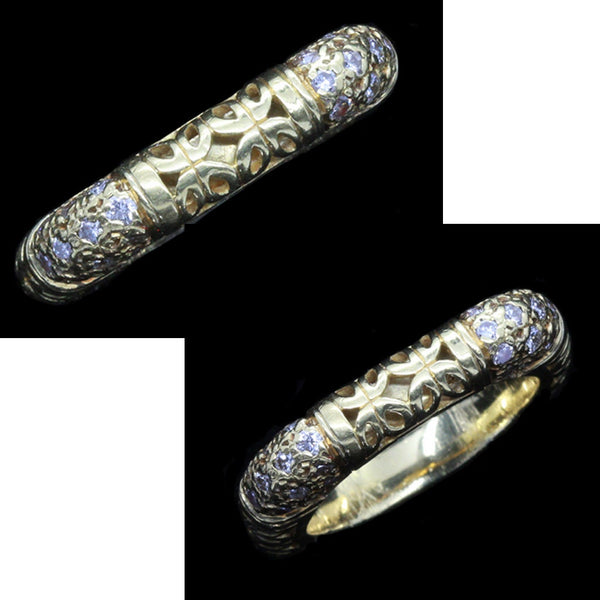 This ring has an interesting history. It has travelled the world (bought overseas), and despite a lot of mystery, it was identified as a ring made by Alishan, an Armenian jeweller working in California who has won multiple awards for his jewelry and who is collected by many celebrities. Circa early 2000's. Thank you Jessica for that information. The design is part of his Gothic Collection. This ring will make a fabulous ring to wear alone, stacked with other rings or as a wedding band.