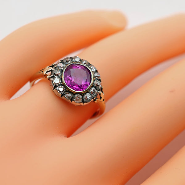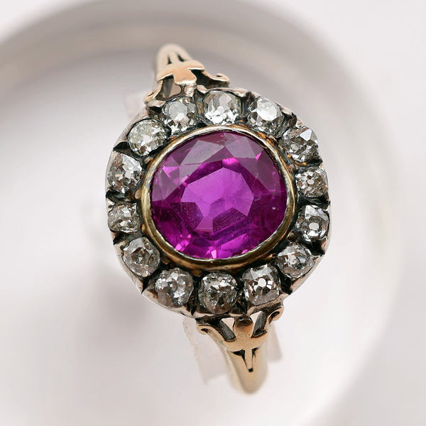 Antique ruby ring. Gold ruby diamond. Comes from Belgium and was probably made around 1900.