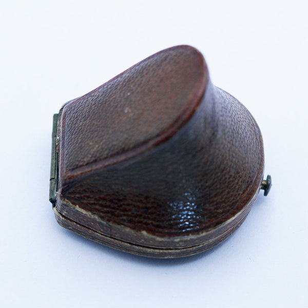 The ring comes with its original box. The box is leather on the outside, velvet for the bottom, fitted part and silk above. Horse-shaped. It is a rare form antique ring box, especially shaped to hold a 'taller' ring.