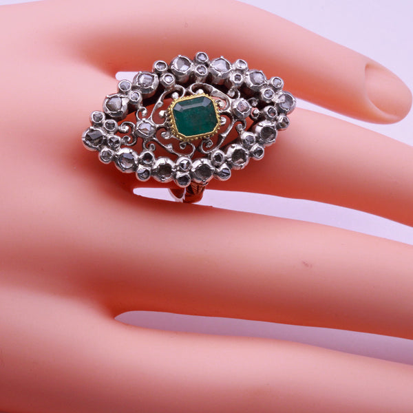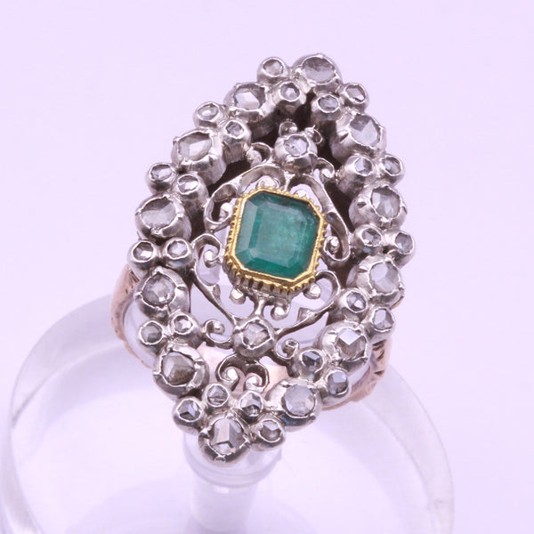Antique Victorian ring. Gold, silver, emerald and diamonds. Made in Sicily, Italy, circa 1890.