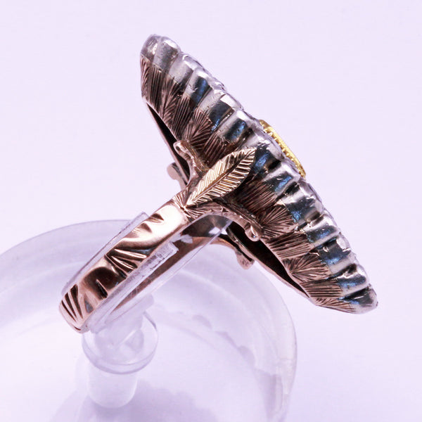 Large size, impressive ring. It is interesting that the craftsman combined the size with very delicate workmanship and design so it has a light appearance.