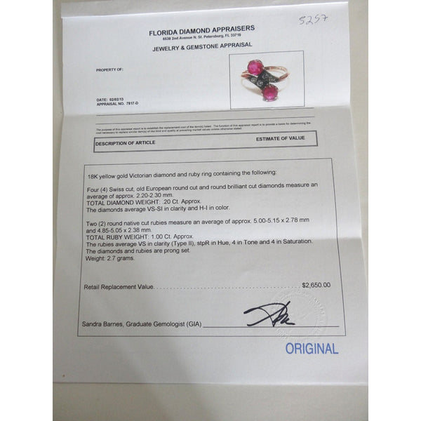 Old appraisal available to new owner. (- price outdated). For fun, we have added a 'photo of a toi moi ruby and diamond ring sold at Sothebys on June 3 2025 for $515616.00 (GBP381000).