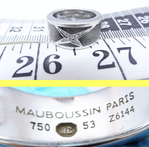 Mauboussin Étoile Mystère Ring. 18k white gold, diamonds and mother of pearl. Made by Mauboussin, Paris France and fully signed and numbered. Estate ring - exact date unknown, but likely late 1900's.