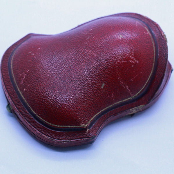 Comes in beautifully shaped, original red leather box with green silk and velvet inside.