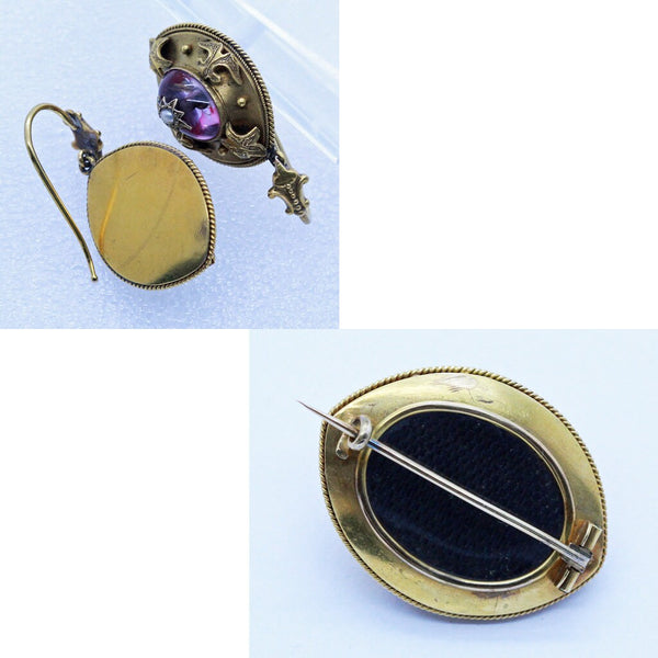Marks and Metal: acid tested 18k (tested brooch and earrings)
