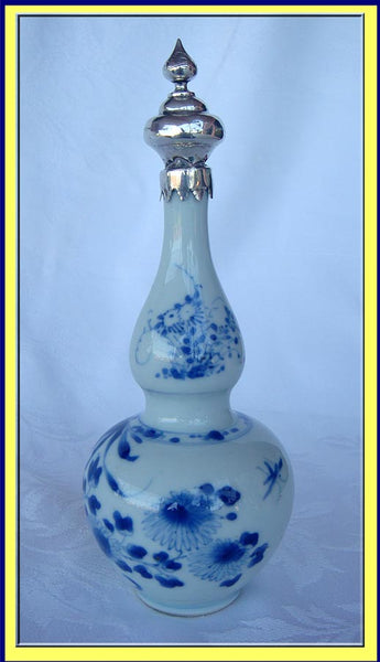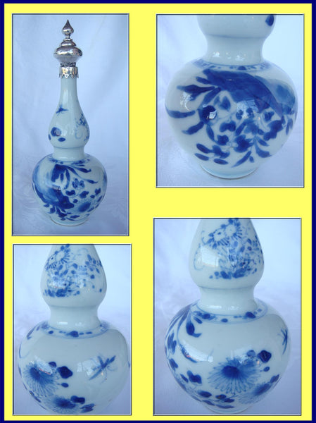Antique double gourd bottle or vase. Porcelain and silver. Made in China and the Netherlands, 19th century.