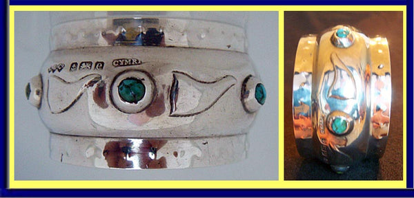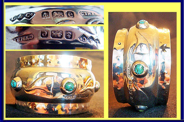 The turquoise matrix was extremely popular in the Arts & Crafts movement and the pulled silver mounts reinforce the concept.