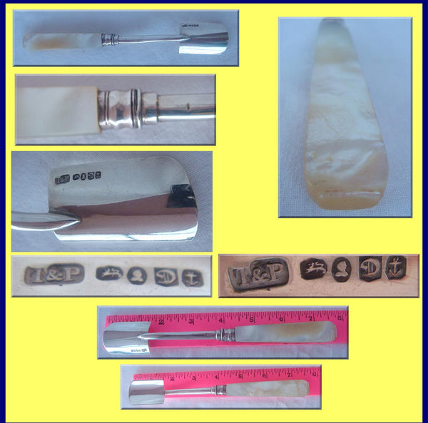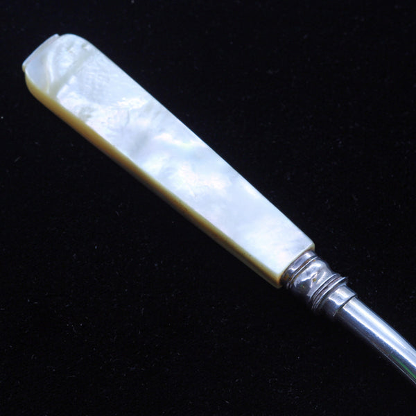 Antique, Victorian mother of pearl handled, sterling silver Stilton cheese scoop / cheese server. Made Birmingham, England, 1837.