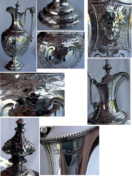 Exceptional Victorian sterling silver claret jug, Sheffield, 1872.