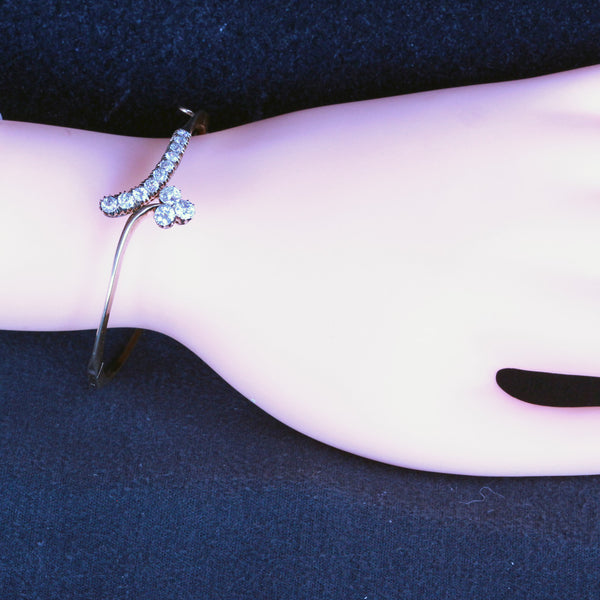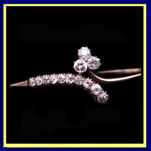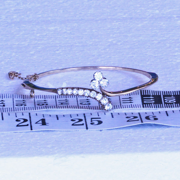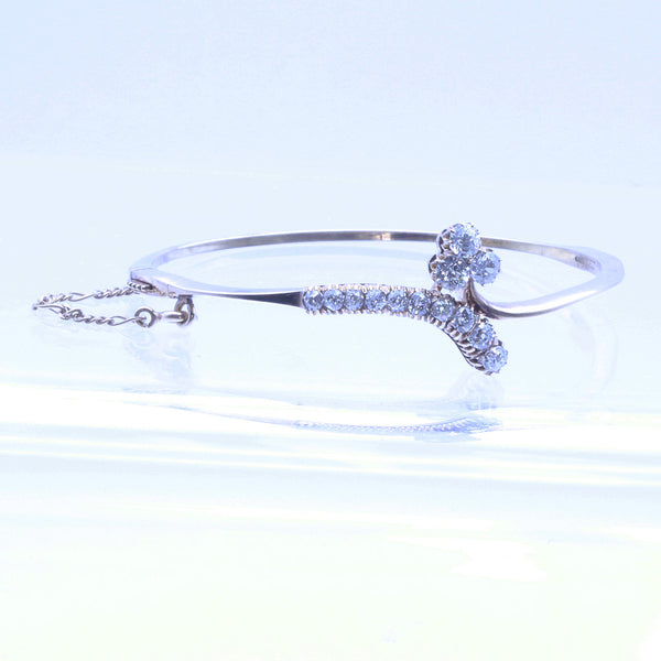 Description : An elegant bangle bracelet in the form of a gold ribbon with a terminal of a graduated, curling stem of diamonds on one side and a lucky 3-leaved clover of diamonds on the other. Understated naturalism, very classy and pretty.
