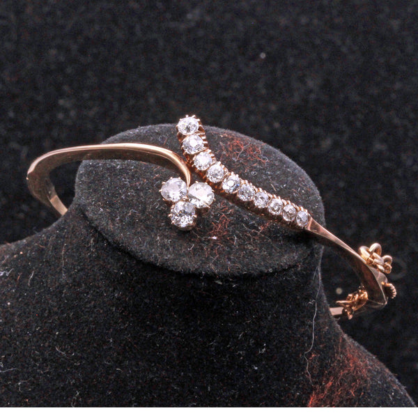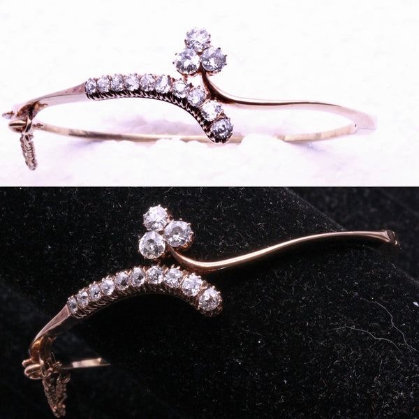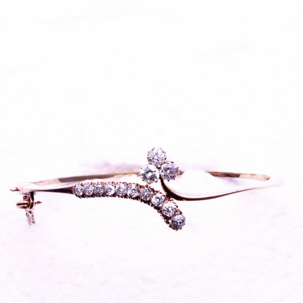 Antique Edwardian bangle bracelet. 14k gold, Old European Cut diamonds. Made circa 1900 - 1910. Exact origin unknown.