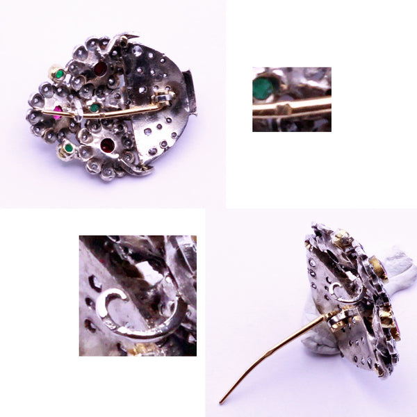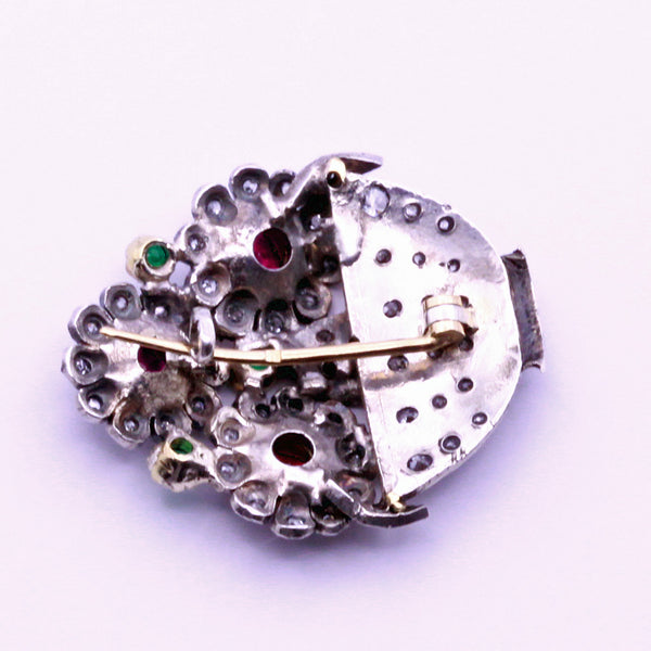 Antique Victorian giardinetti brooch. 18k gold, silver, diamonds, rubies and emeralds. Made late 19th century, France.