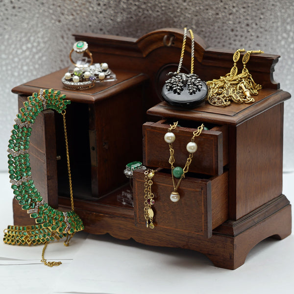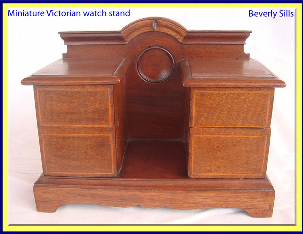 Antique Victorian miniature wood furniture in the form of a desk or cabinet that actually serves as a watch stand. Made 19th century.