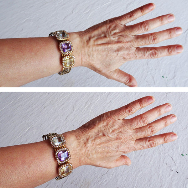 Antique Victorian bangle bracelet. 18k gold, diamonds, aquamarine, citrine and amethyst. Made in England circa 1880 - 1890. Comes in Original fitted box By Appointement.
